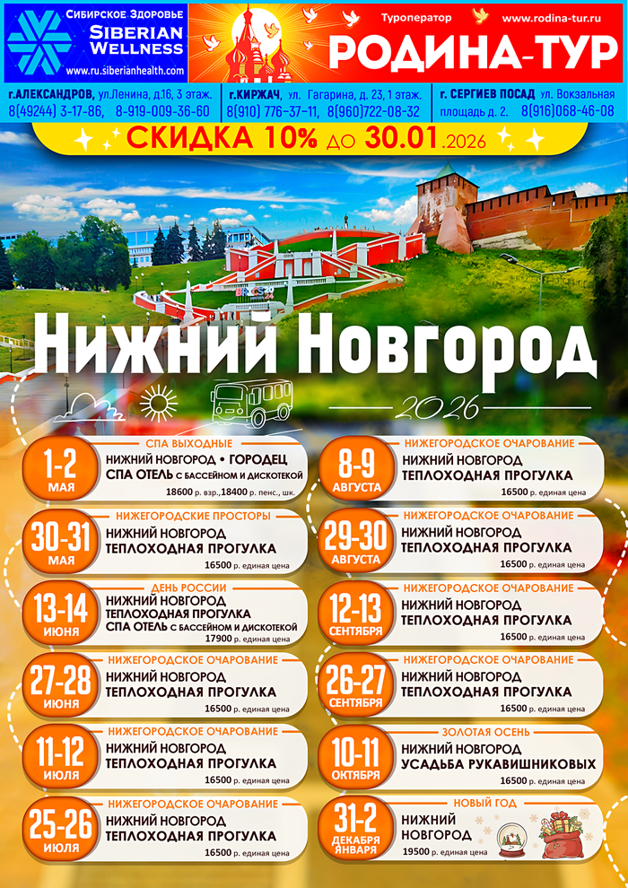Раннее Бронирование! Скидка 10% до 30.01.26.Нижний Новгород 2026