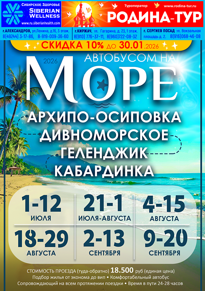 РАННЕЕ БРОНИРОВАНИЕ! Скидка 10% до 30.01. Автобусом к Чёрному морю