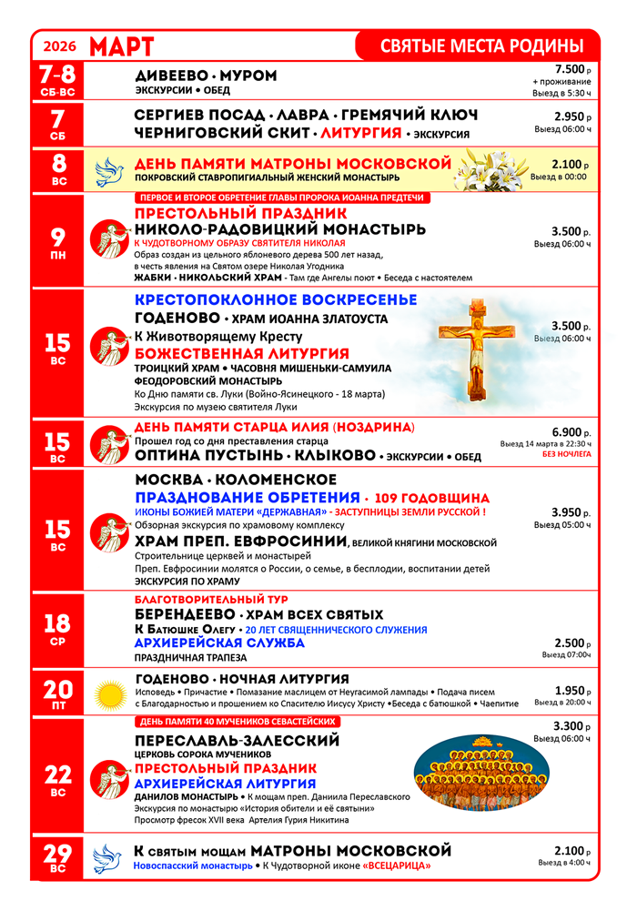 График туров на март