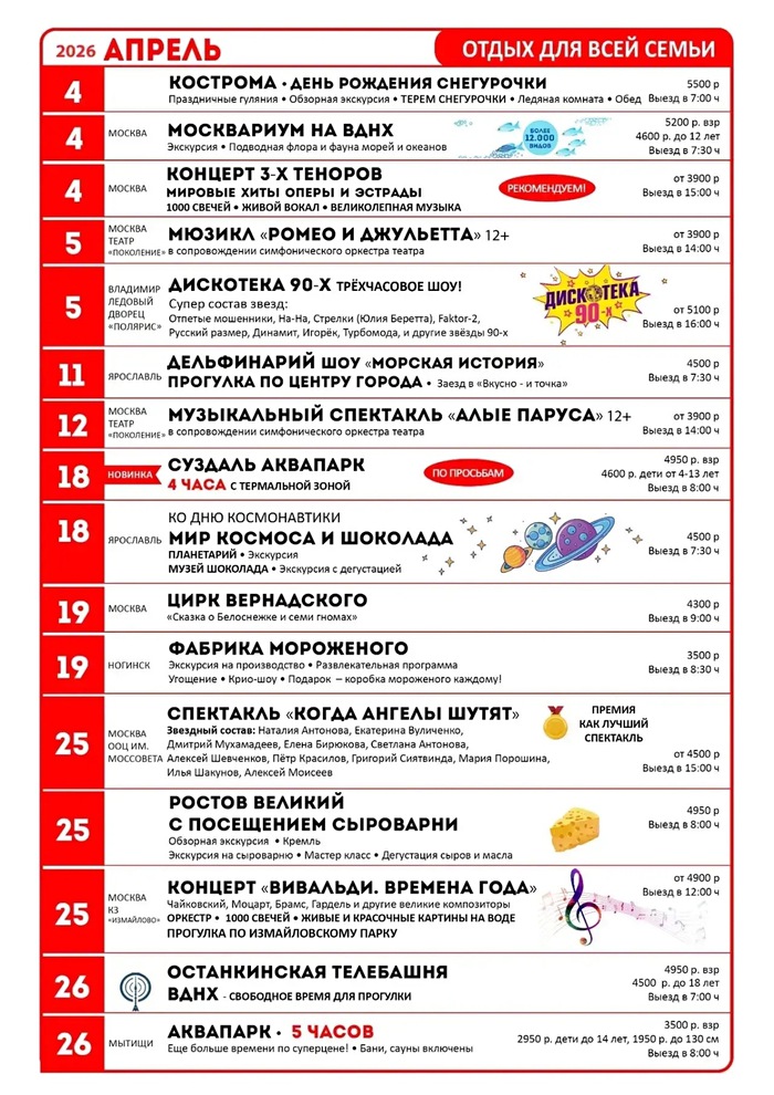 График туров на апрель