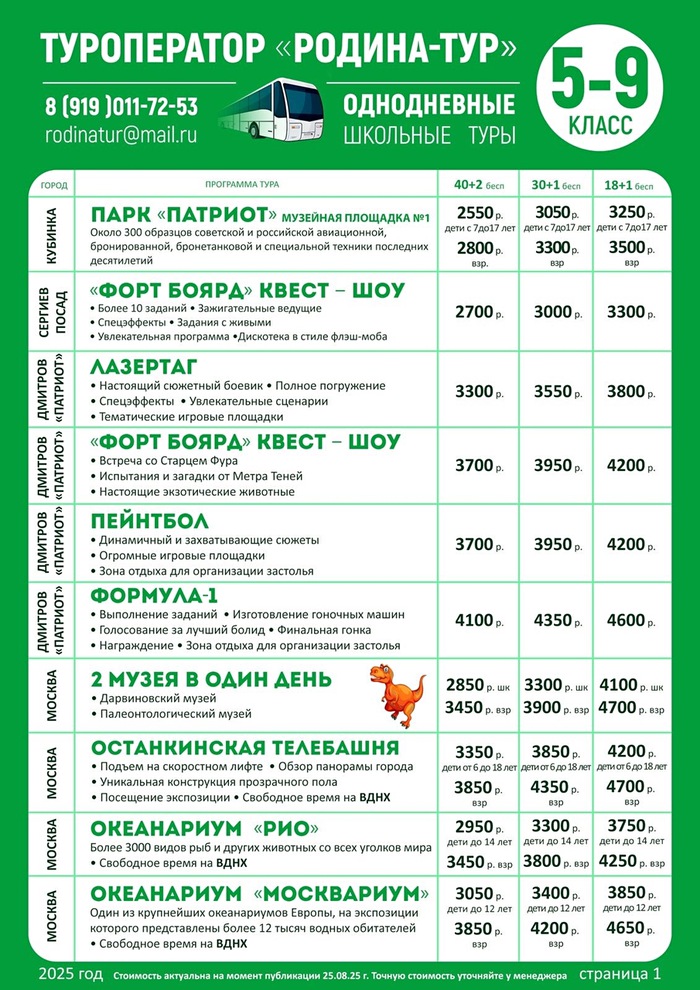 Внимание, цены уточняйте у менеджера при бронировании, могут быть изменения.