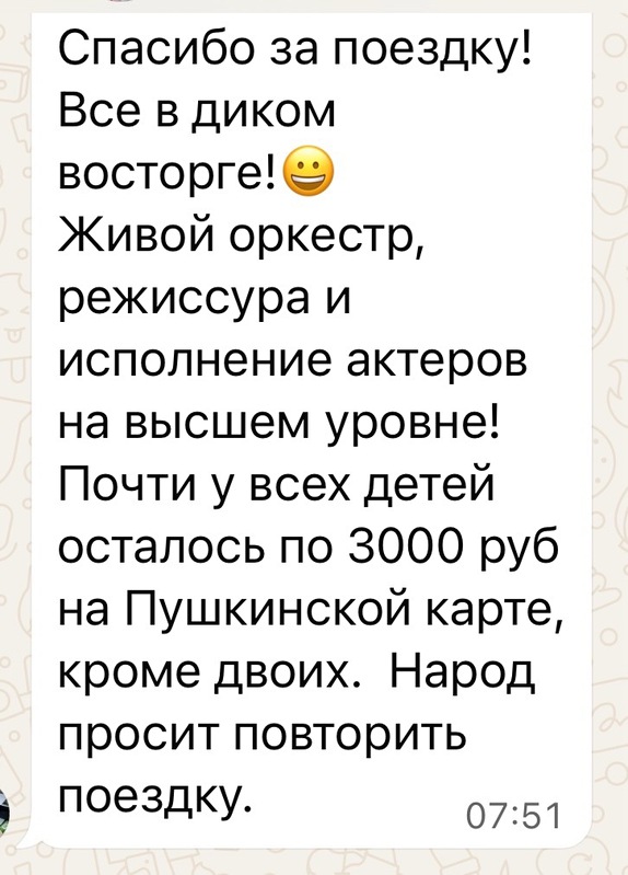 Спасибо за поездку. Все в диком восторге! Народ просит повторить.