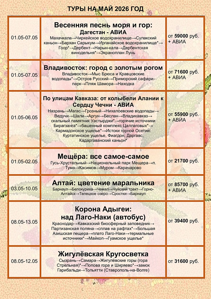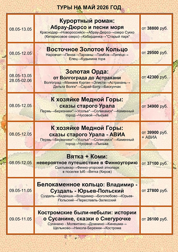 График туров на май