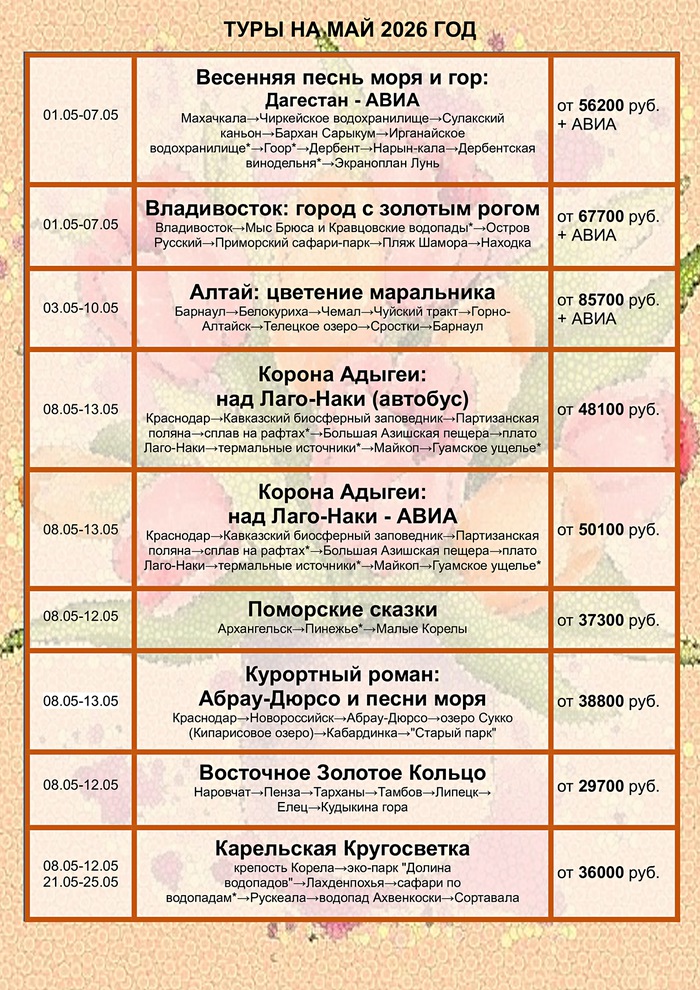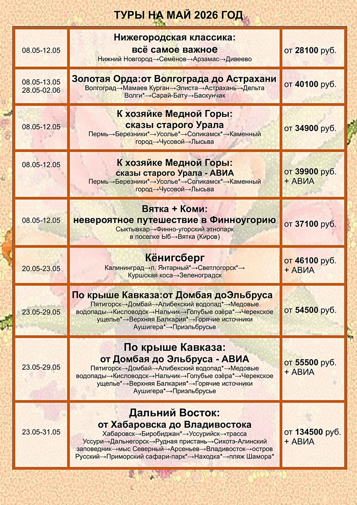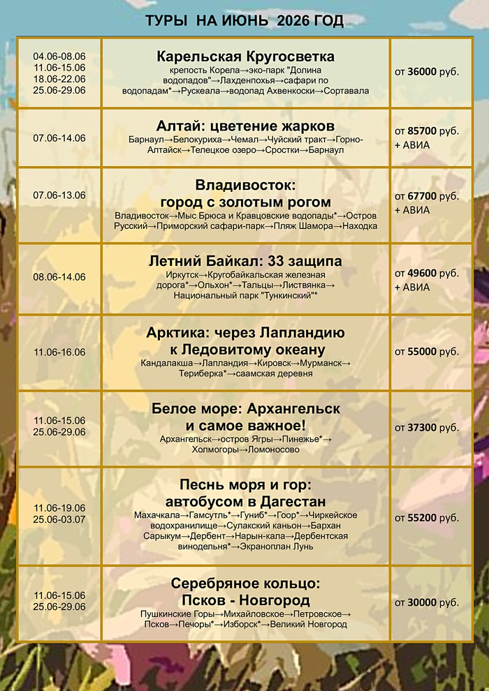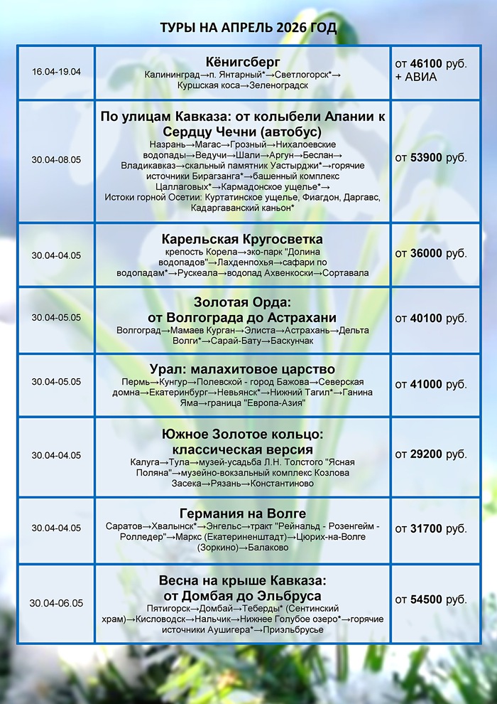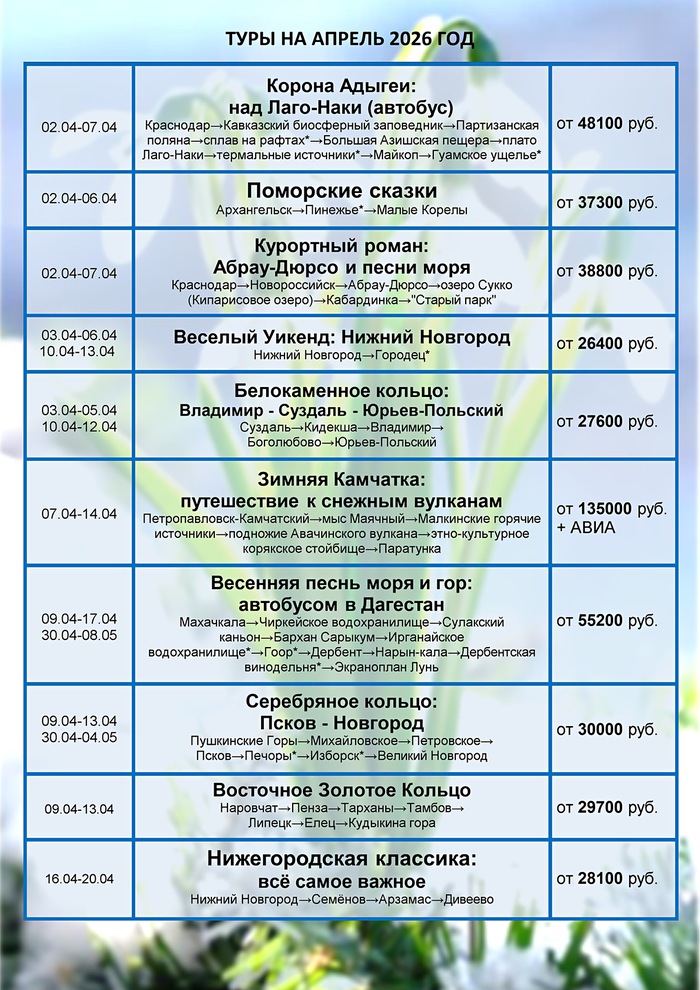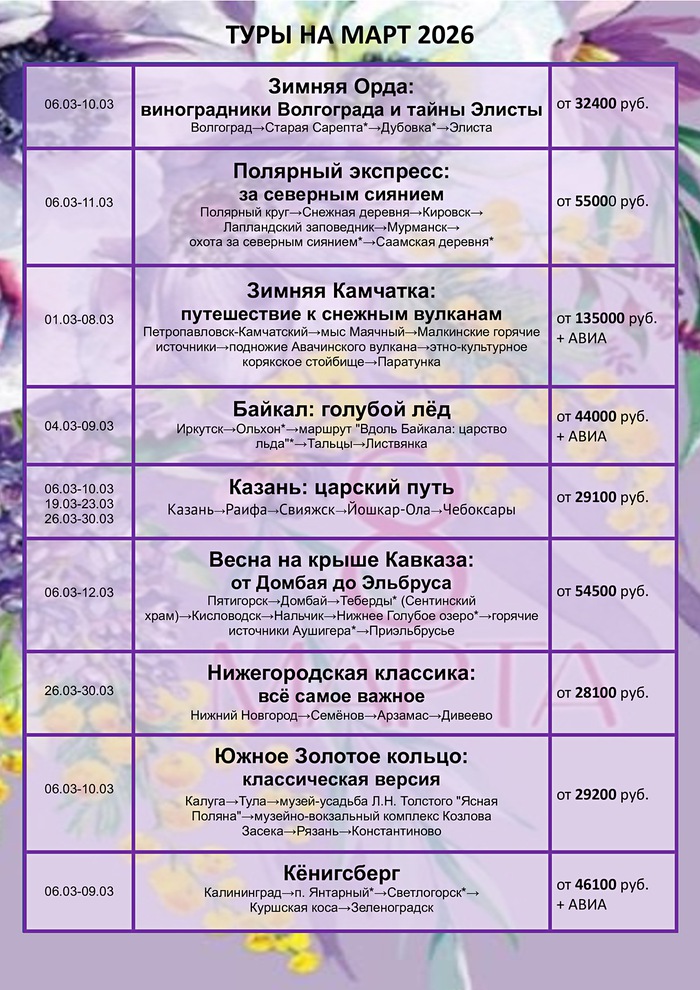 График туров на март