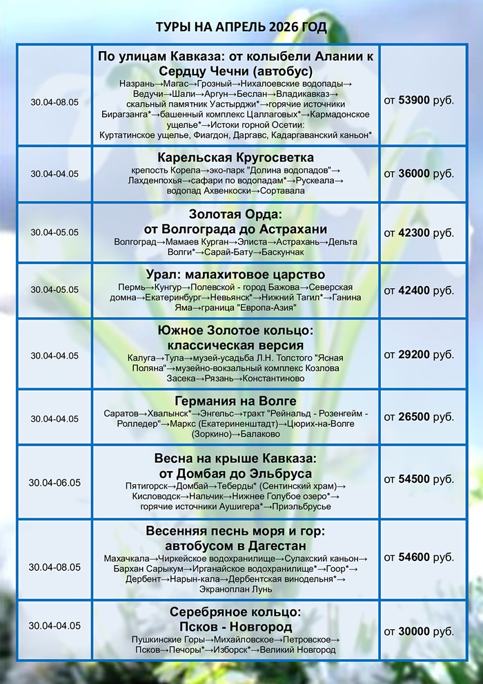 График туров на апрель