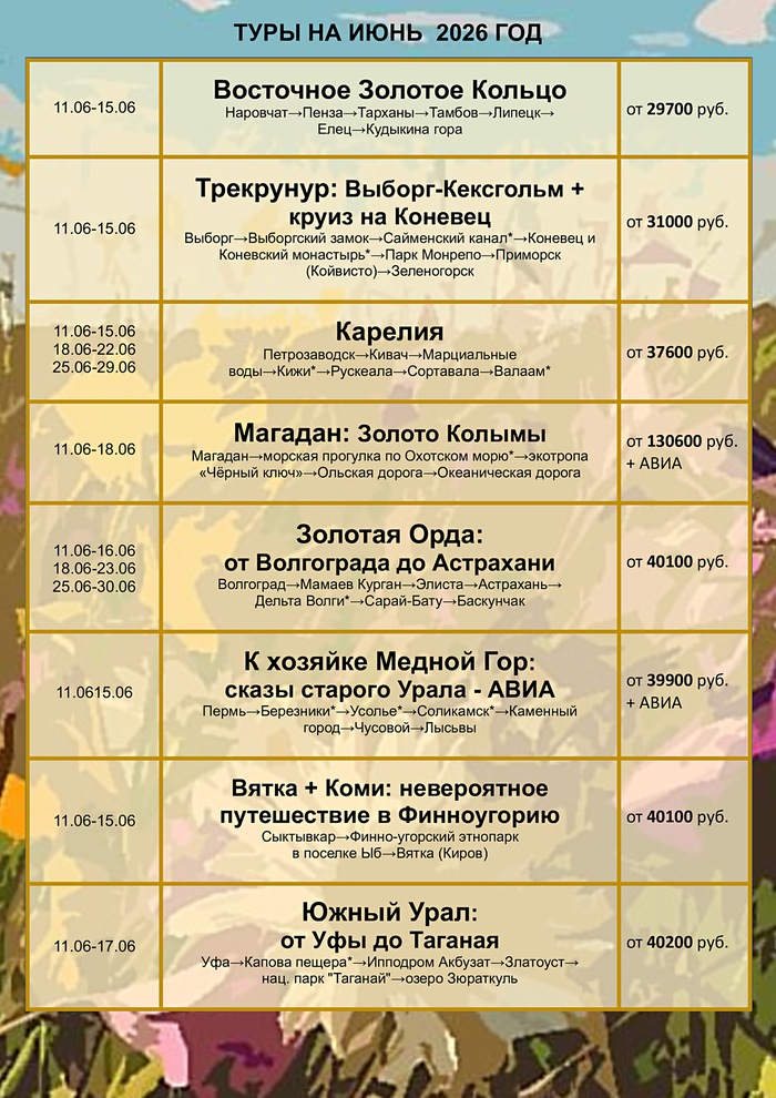 Многодневные туры от партнеров