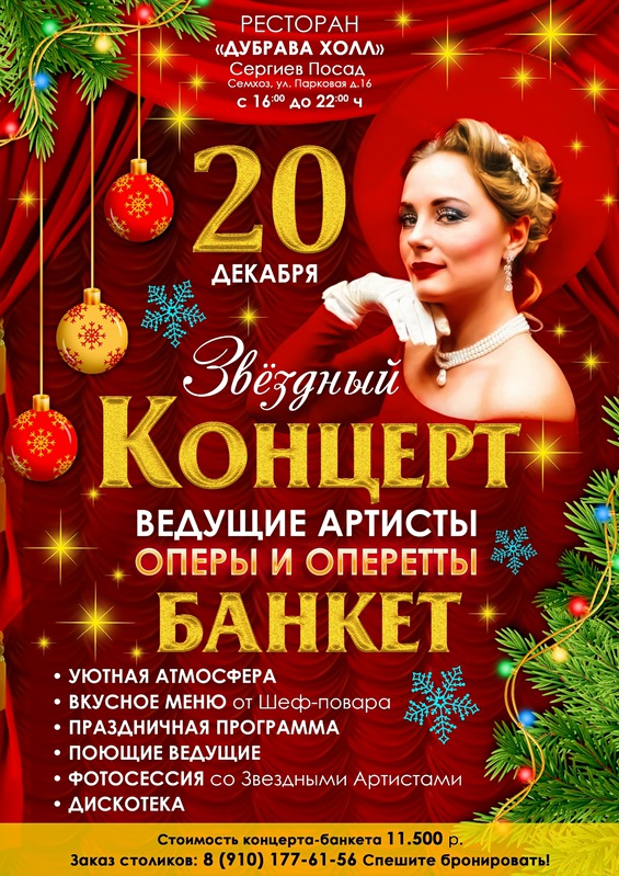 Мы приглашаем вас на волшебный новогодний БАНКЕТ, где выступят настоящие звезды ОПЕРЫ и ОПЕРЕТТЫ, харизматичные ВЕДУЩИЕ-ПЕВЦЫ!