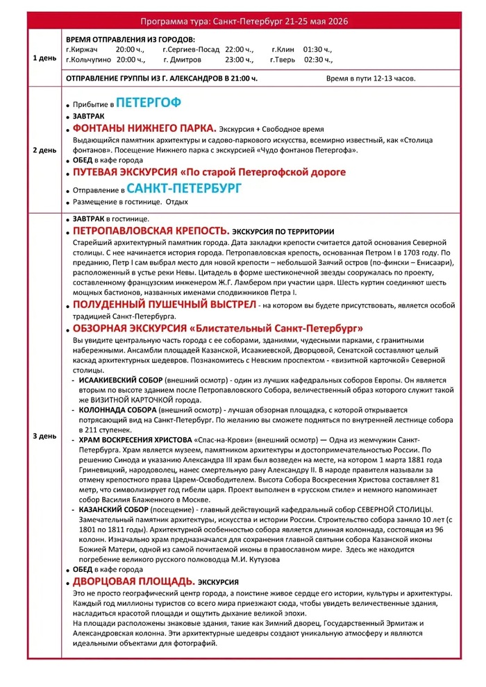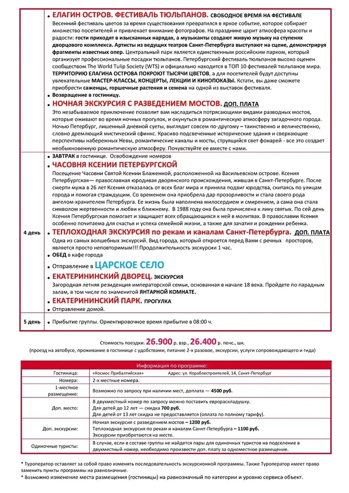 Стоимость тура: 26900 руб. взр., 26400 руб. пенс., шк.