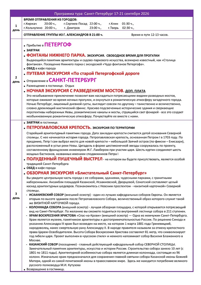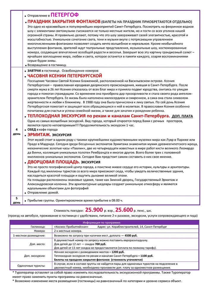 Стоимость тура: 25900 руб. взр., 25600 руб. пенс., шк.
